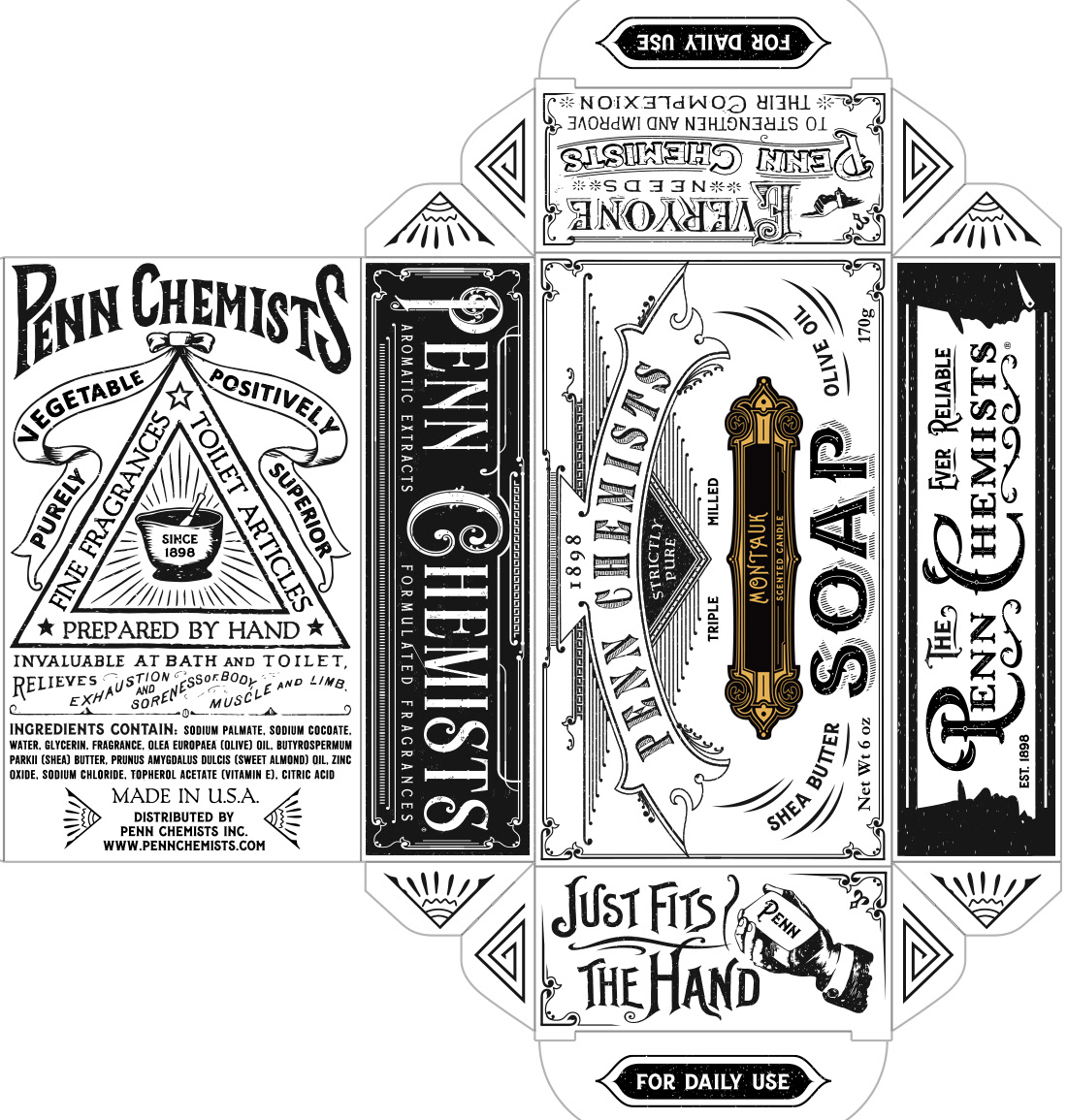 packaging, branding design, illustrations, and layouts for P.C